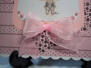 here is a very simple card for today....ballerina gillian,she is so cute and is a digi from prairie fairy,i coloured her with promarkers ,the papers are free from a mag last year,ribbon and pearls are from meiflower,wild orchid blooms and a sentiment from craftwork cards to finish.